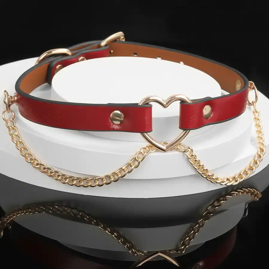 BDSM Κολάρο με Αλυσίδα και διακοσμητική καρδιά